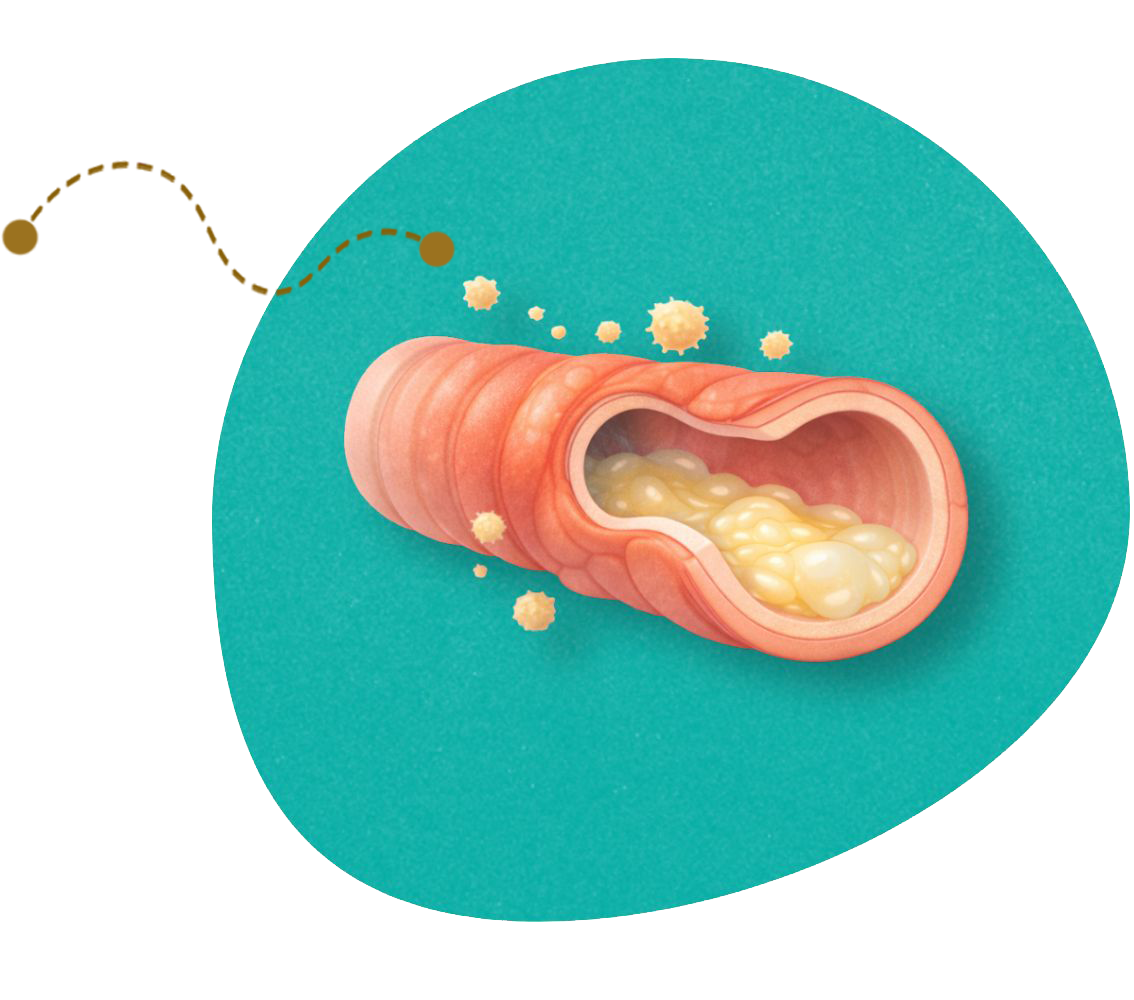 En las bronquiectasias, los bronquios están dilatados y pierden parte de su capacidad natural para eliminar secreciones. El moco se acumula en estas zonas, se espesa y puede infectarse con más facilidad.