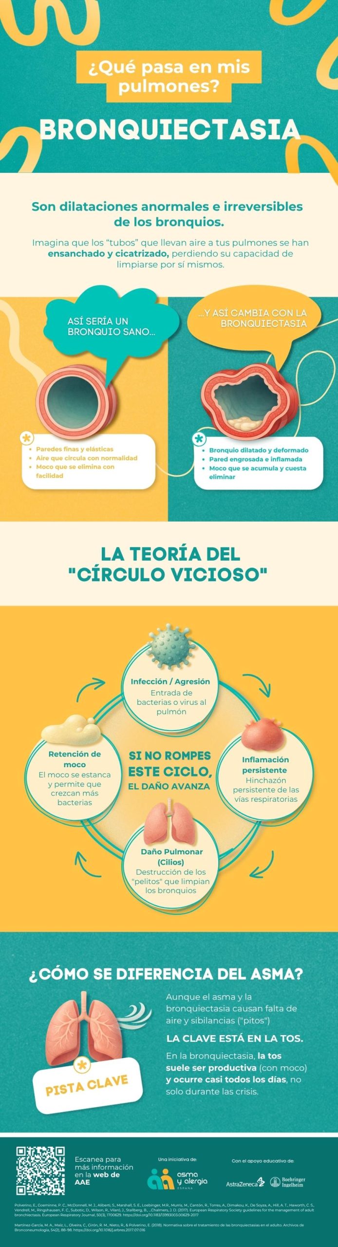7.Polverino E, Dimakou K, Traversi L, et al. Bronquiectasias y asma: datos del Registro Europeo de Bronquiectasias (EMBARC). J Allergy Clin Inmunol. Publicado en línea el 22 de febrero de 2024. doi:10.1016/j.jaci.2024.01.027.
