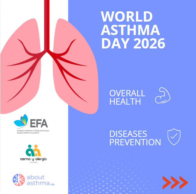 El próximo 5 de mayo celebramos el Día Mundial del Asma 2026. Bajo el lema compartido con la Federación Europea de Asociaciones de Pacientes de Alergia y Vías Respiratorias (EFA), #EmpoweredToBreathe (“Empoderados para respirar”), desde Asma y Alergia España (AAE) nos unimos a esta iniciativa para recordar que el control del asma es posible cada día.