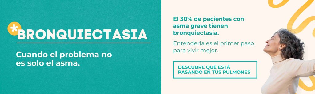 La conexión con el asma es especialmente relevante: hasta un 30%* de los pacientes con asma grave también tienen bronquiectasias. Cuando ambas condiciones conviven en una misma persona, lo que conocemos como fenotipo mixto, el control de la enfermedad se complica y aumenta el riesgo de sufrir crisis e infecciones.